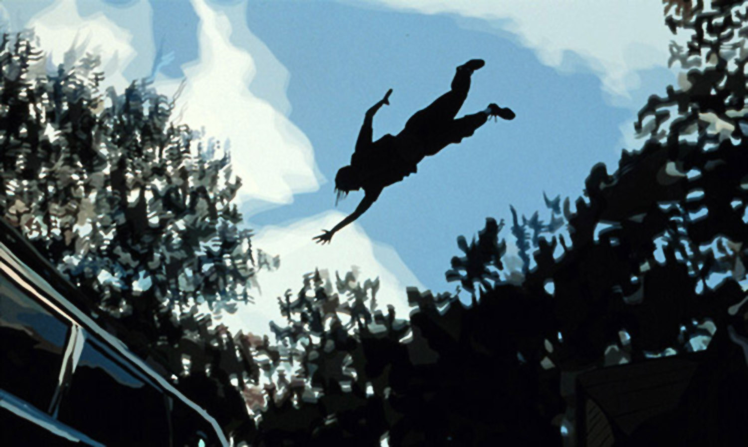 What really gets me about this scene and about the whole movie Waking Life is that this is the point in which it is not just a movie about lucid dreaming. Linklater, the writer and director of the film, leads his protagonist essentially to his death and the protagonist spends the rest of the movie in varying degrees of ever-increasing lucidity in a dream that he feels he cannot escape or wake up from. Linklater tells him, “Oh, no, you’re wrong. That was just a false awakening,” as if to say “No, you’re not dead yet, you still have a choice.”